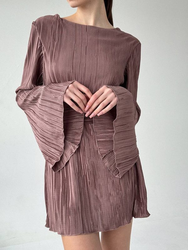 Ця сукня – справжнє втілення жіночності й універсальності. Її особлива фактура пліссе додає шарму, а стильний крій дозволяє підлаштувати образ під ваш настрій: носіть з розрізом на декольте чи на спинці