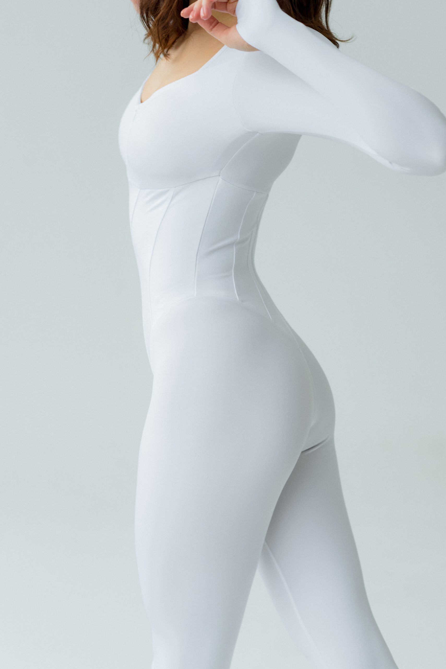 Цей комбінезон з імітацією корсету створений для тих, хто хоче виглядати елегантно навіть під час тренувань. Завдяки анатомічному дизайну та високоякісному еластичному матеріалу, він моделює фігуру, забезпечуючи комфорт і свободу рухів.