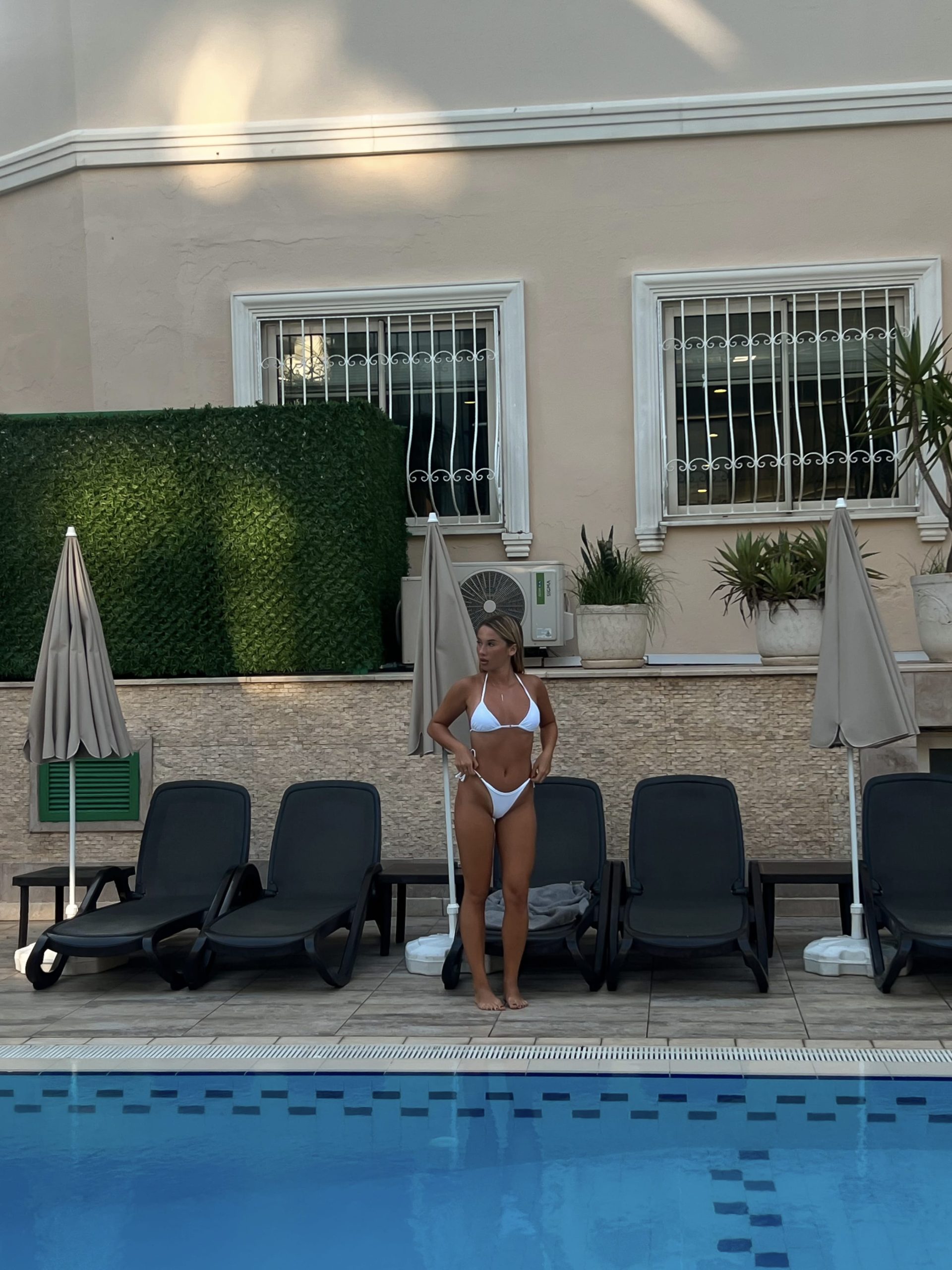 Classic triangle top and high-waist bottoms — for a clean, feminine silhouette.