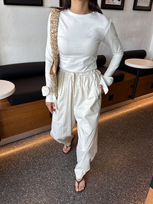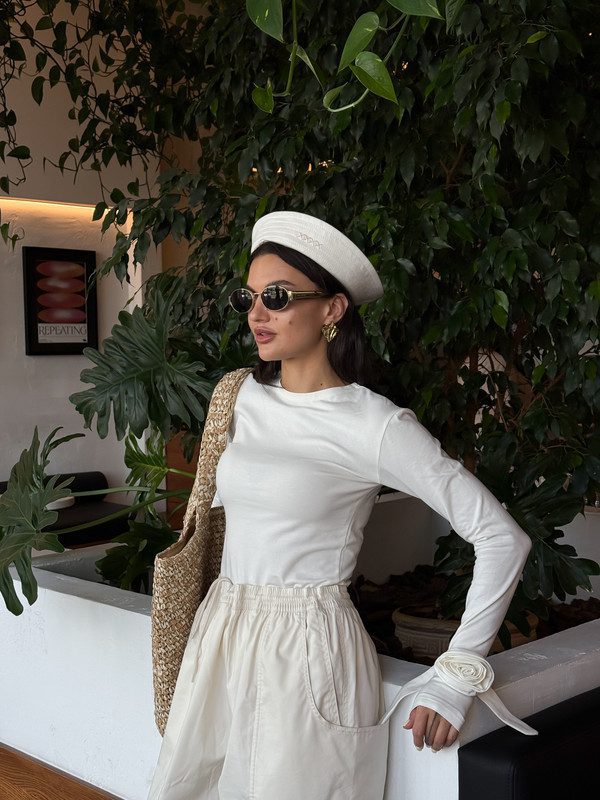 Створи свій ідеальний образ із цим білим лонгслівом, який поєднує комфорт, жіночність та стиль.