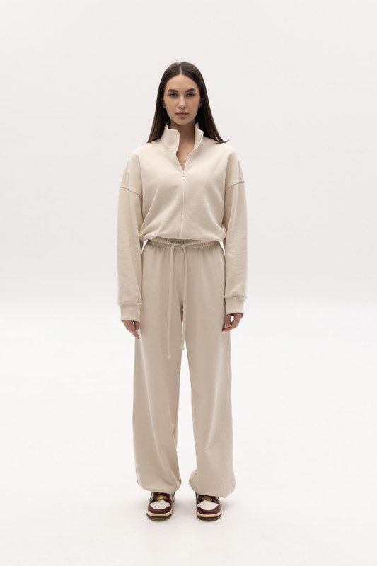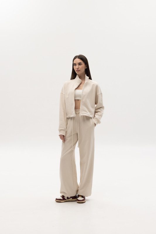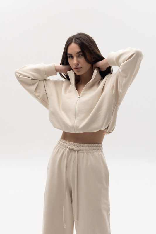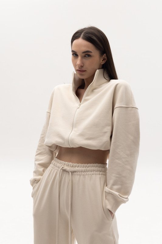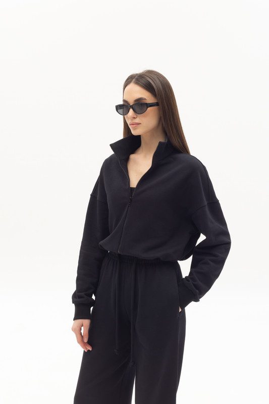 Features: no side pockets, medium-length sleeves with dropped shoulders. Has elastic fasteners at the bottom.