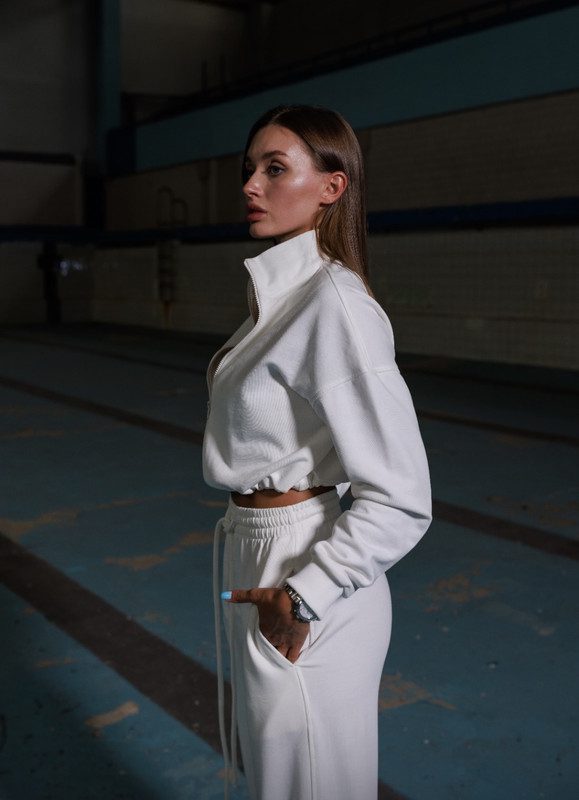 Особливості: відсутність бокових кишень, середньої довжини рукав зі спущеним плечем. Внизу має фіксатори на резинці.