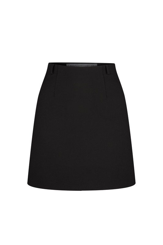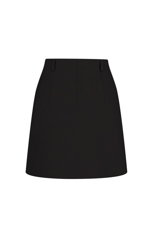 Класична чорна міні-спідниця з виточками спереду та ззаду створює витончений силует і підкреслює лінію талії. Лаконічний дизайн доповнений боковою застібкою на потаємну блискавку, що робить модель зручною та акуратною у носінні. Виконана з костюмної тканини на основі віскози та поліестеру, зі 100% віскозною підкладкою, спідниця поєднує комфорт і елегантність. Базова річ гардероба, яка легко комбінується як із діловими, так і з вечірніми образами.