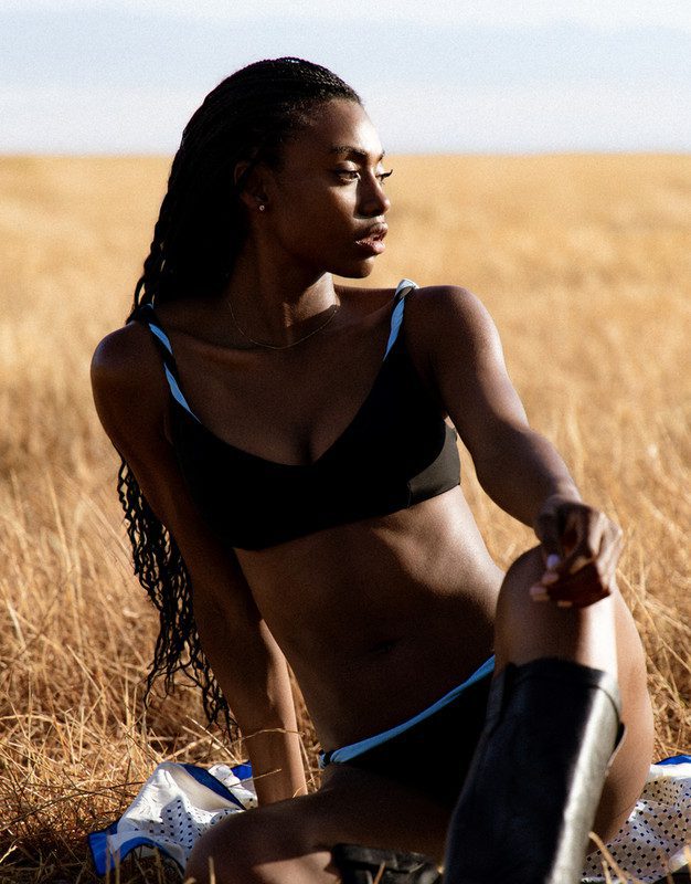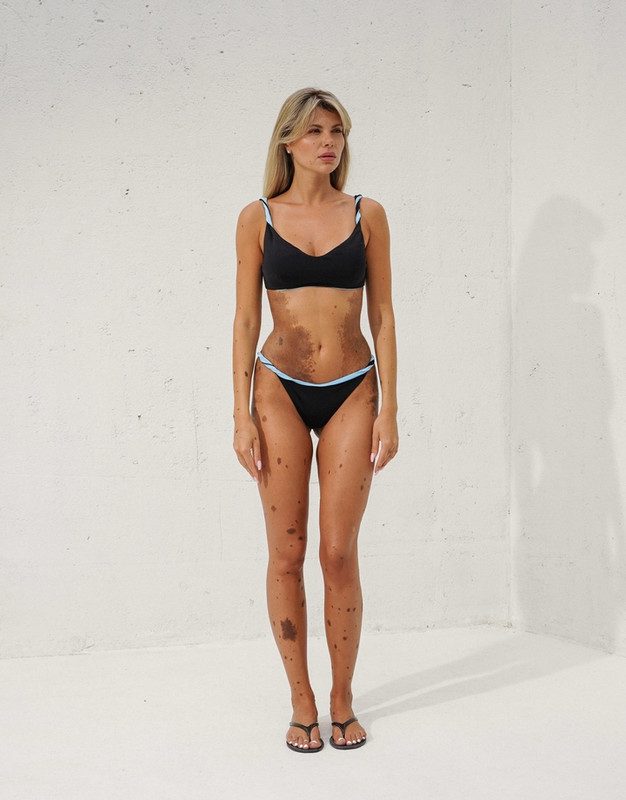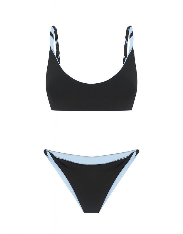 Роздільний двосторонній купальник, як мікс класичного чорного та контрастного блакитного.