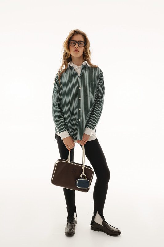 Ця сорочка — втілення продуманої простоти. Виготовлена з 100% італійського котону, вона має легку текстуру, чудово тримає форму та дарує відчуття свіжості навіть у русі. Лаконічна вертикальна смуга витягує силует, а ініціали бренду, делікатно вишиті на кишені, додають акценту — стримано, але зі смаком.