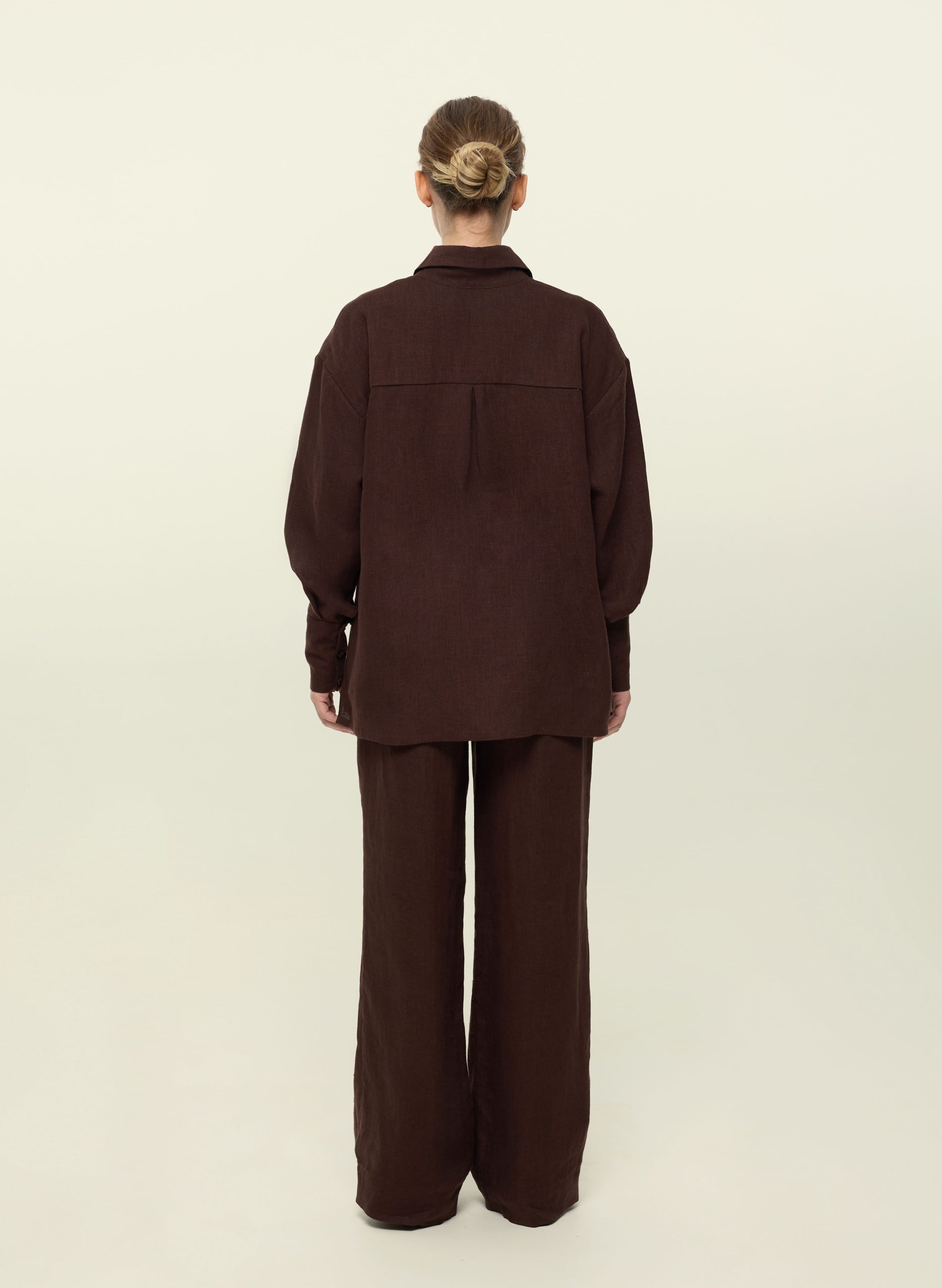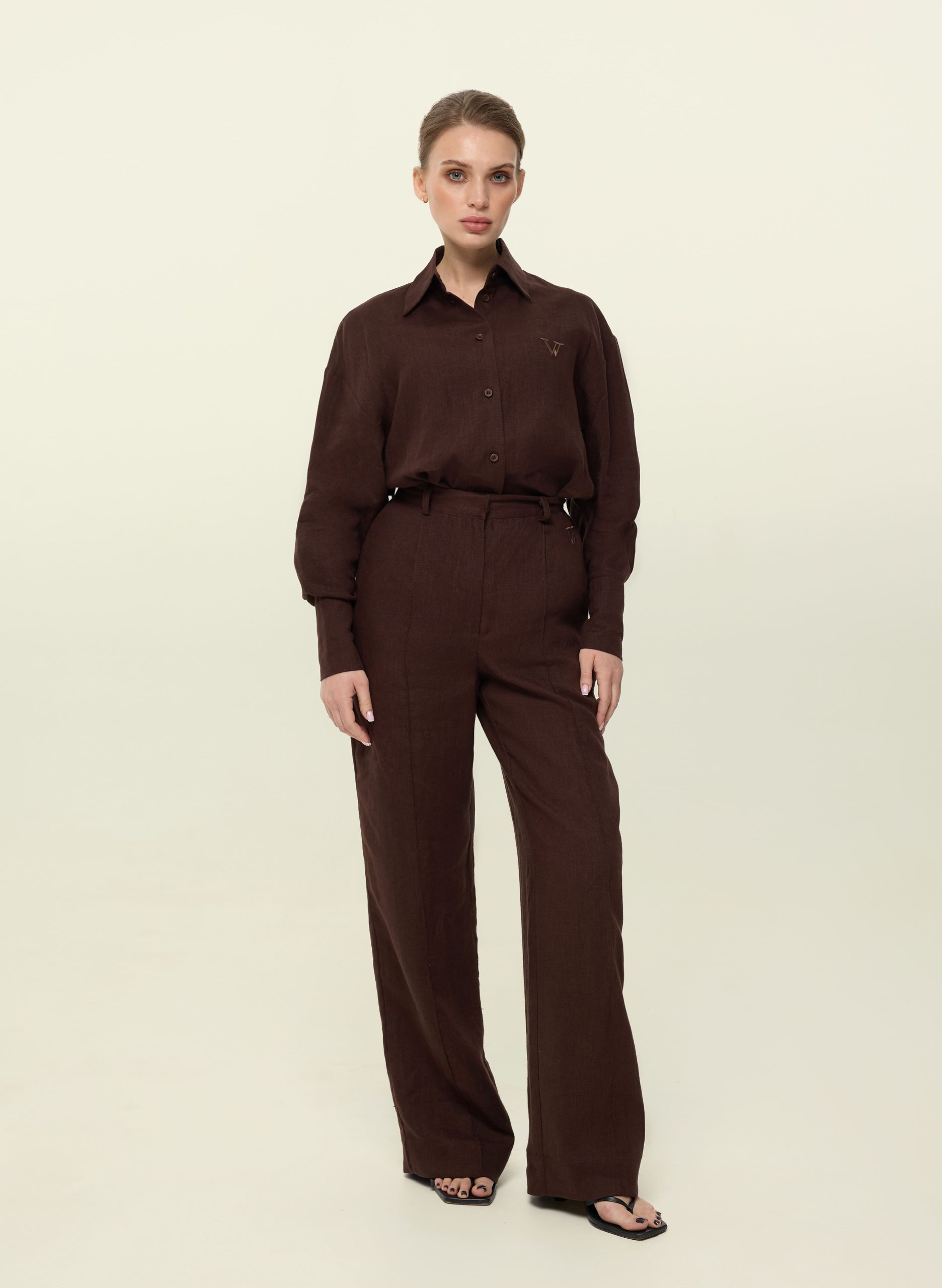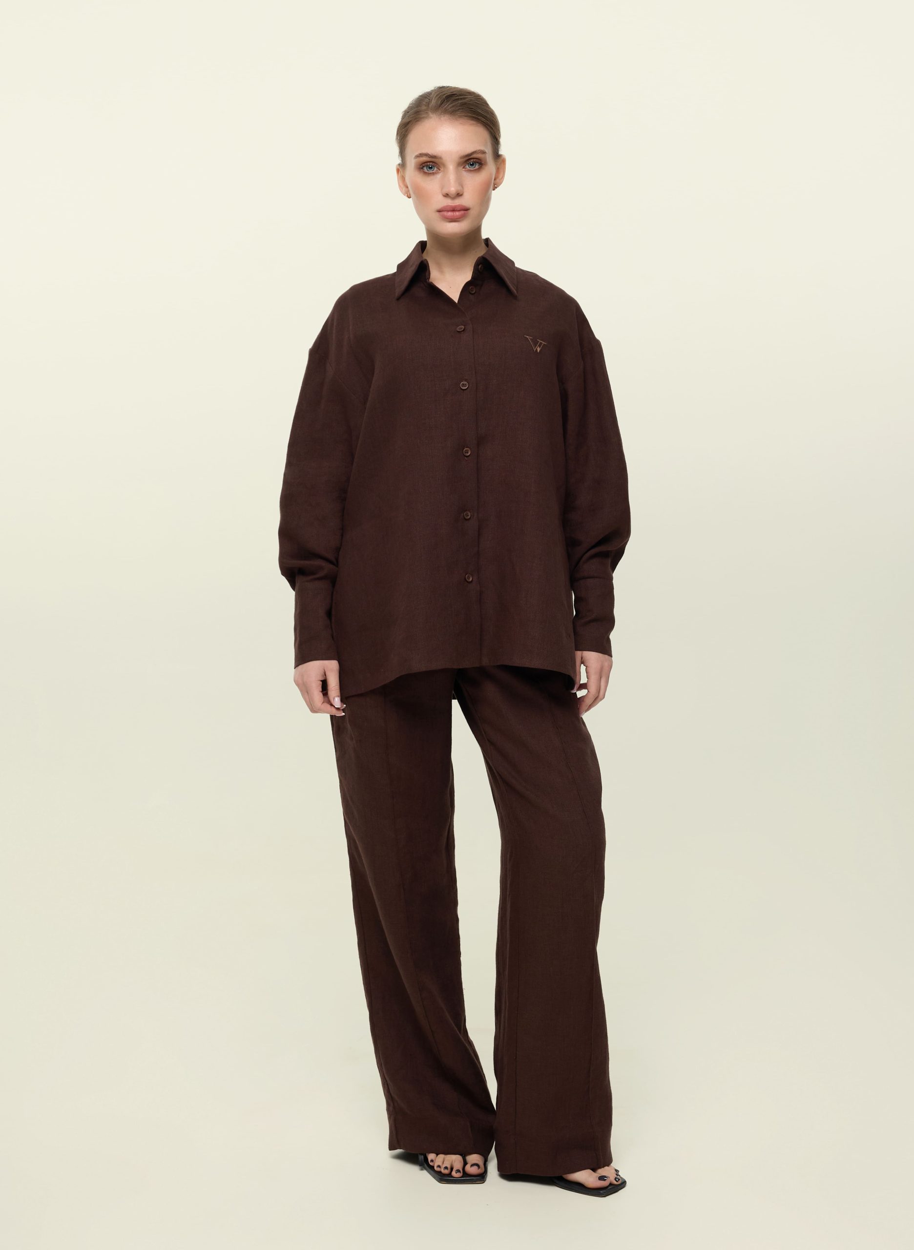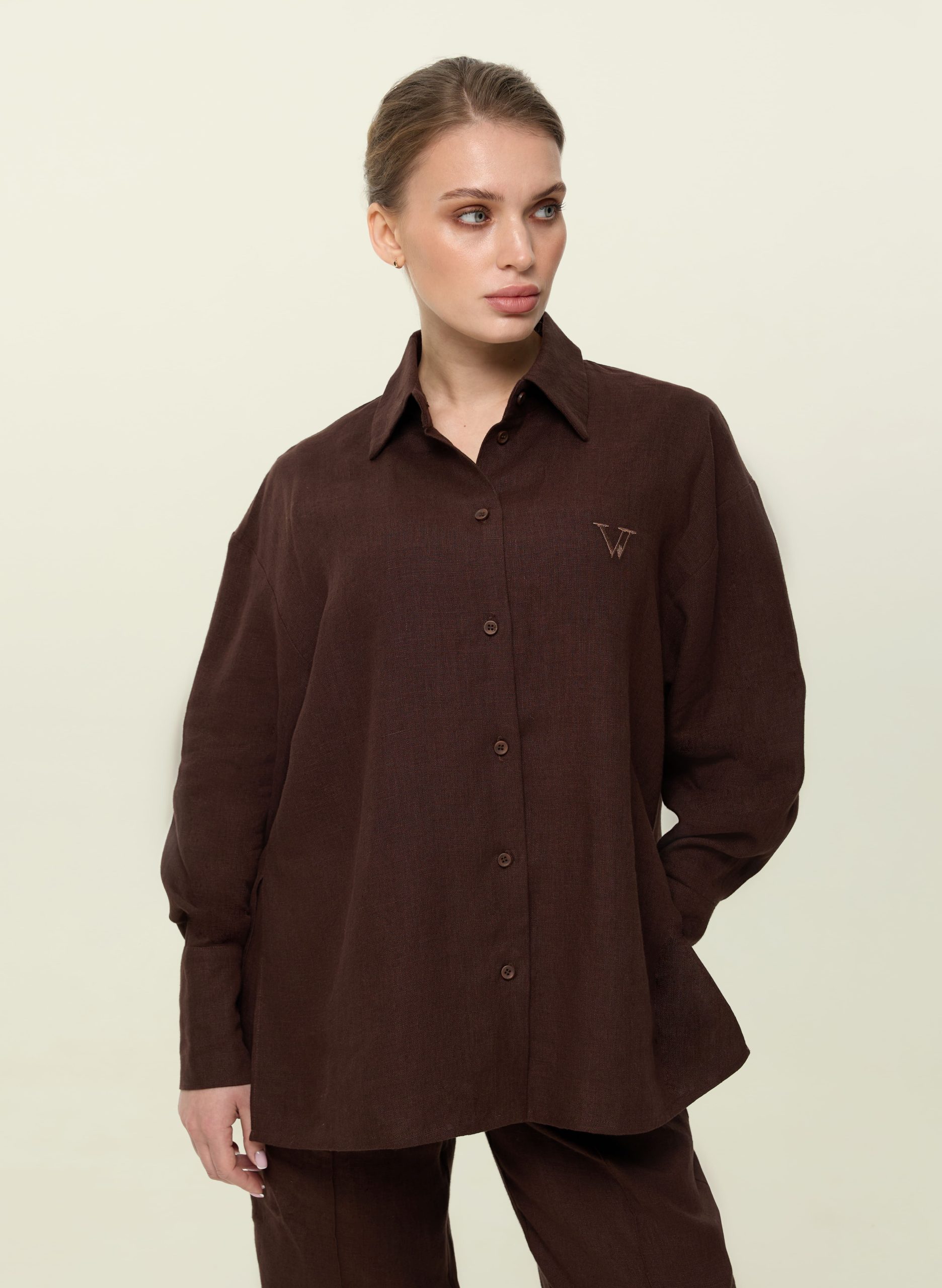 Lightweight and breathable thanks to natural linen — perfect for hot weather. The relaxed fit, dropped shoulders, extended cuffs, and tone-on-tone embroidered monogram add effortless elegance. The sleeves are thoughtfully designed so you can wear them buttoned or unbuttoned. Side slits give you styling freedom: tuck the front in, tie it up, or leave it loose.