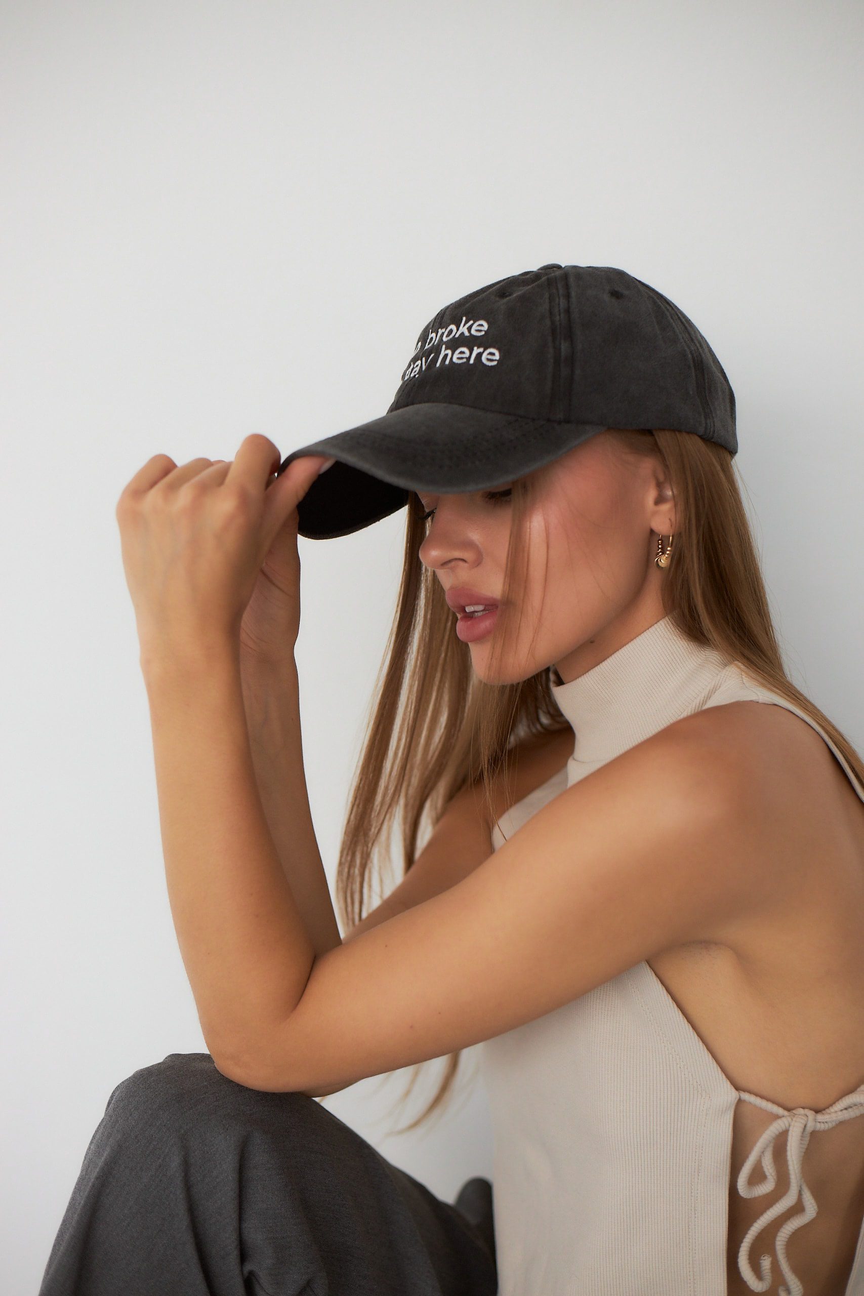 Кепка “Too Broke to Stay Here” — це стильний спосіб з гумором підкреслити свою незалежність від матеріальних цінностей. Сірий колір із потертостями додає їй вінтажного шарму, символізуючи вільний дух та легке ставлення до життєвих викликів.
