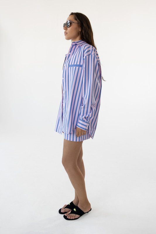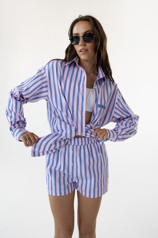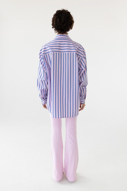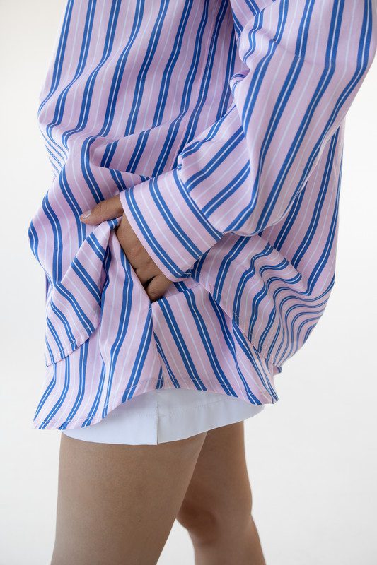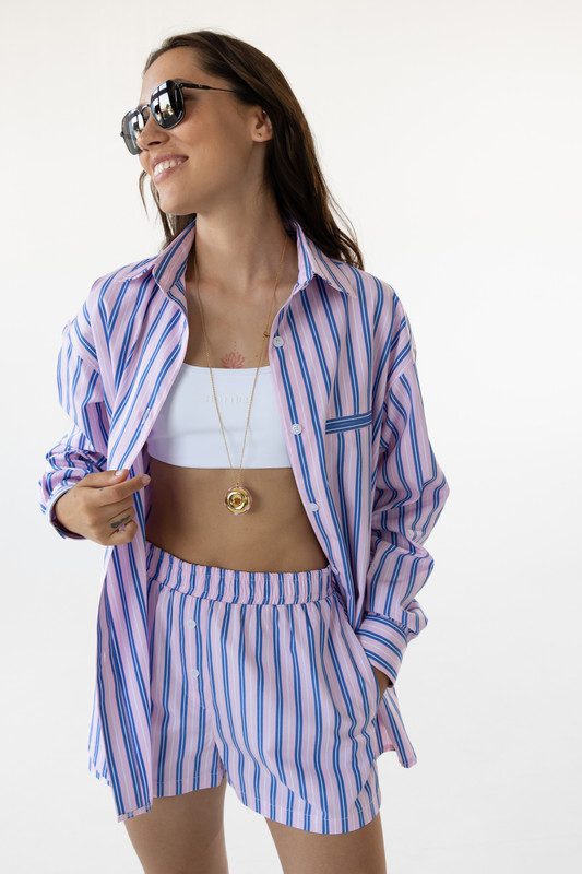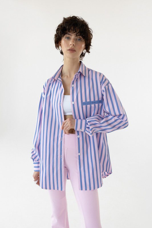 Смугаста сорочка в рожево-блакитній палітрі — кольори, що освіжають настрій