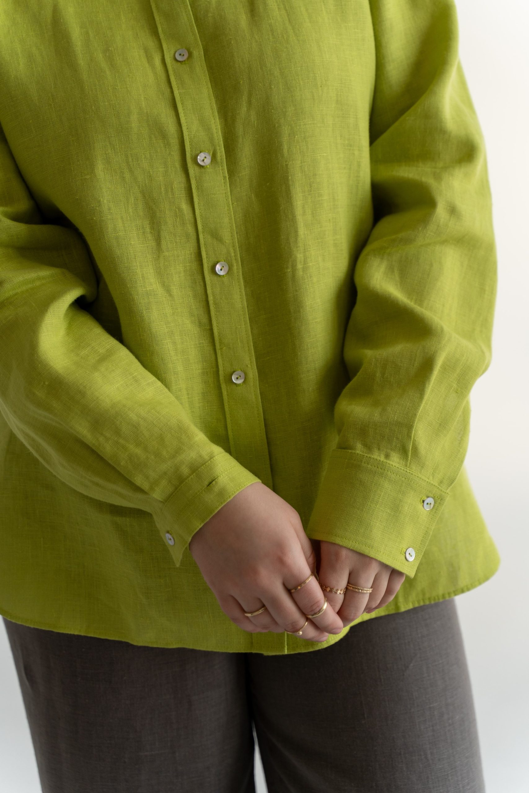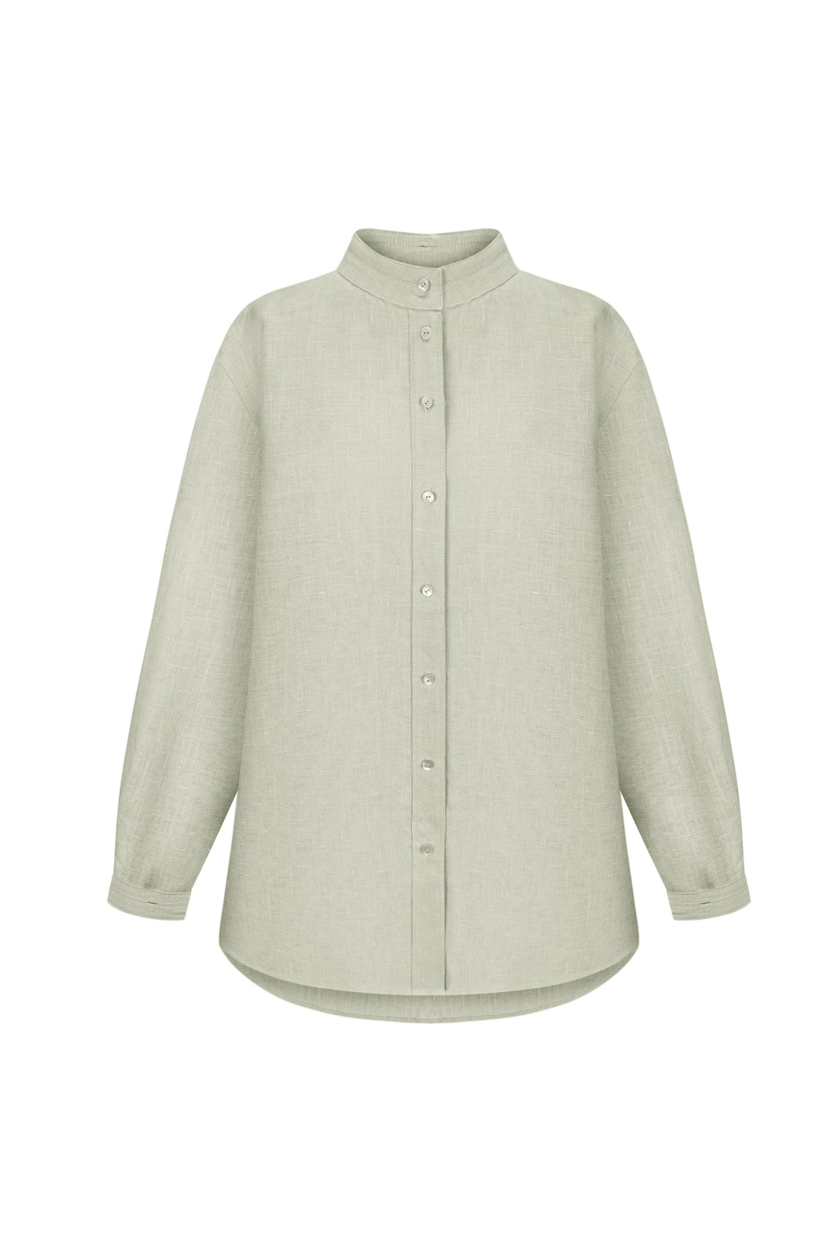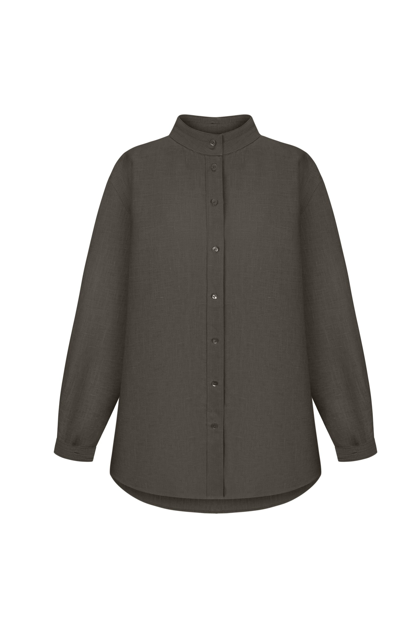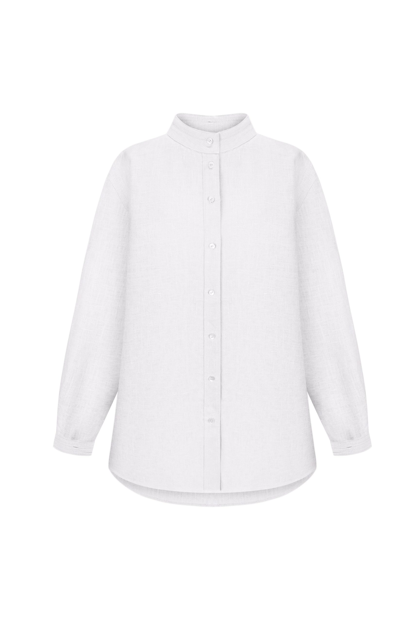 Базова лляна сорочка вільного крою з довгим рукавом на ґудзиках. Має в основі комір стійку та вузькі манжети, а також у комплекті відкладний комір та подовжені манжети, які пристібаються на ґудзиках. Таким чином сорочку можна носити в чотирьох різних варіантах.