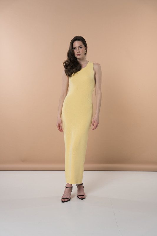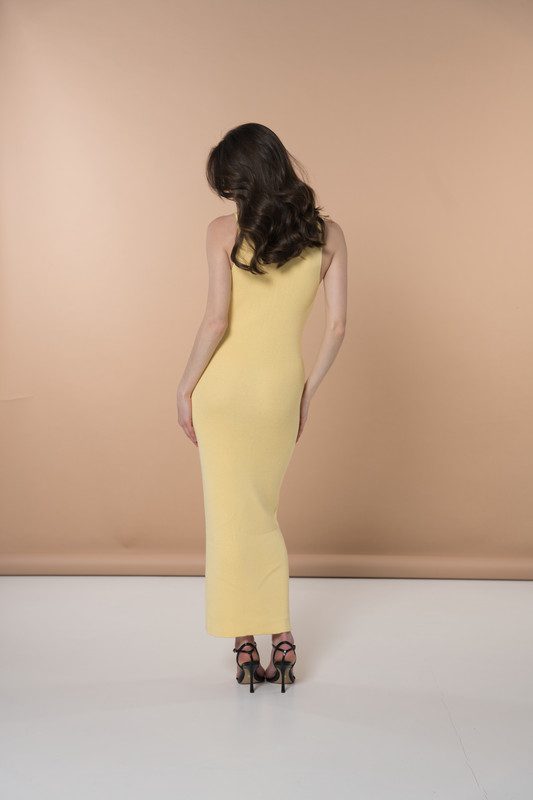 Силуетна в’язана сукня довжини міді. Ідеально вигялдає на тілі та підкреслює форми.