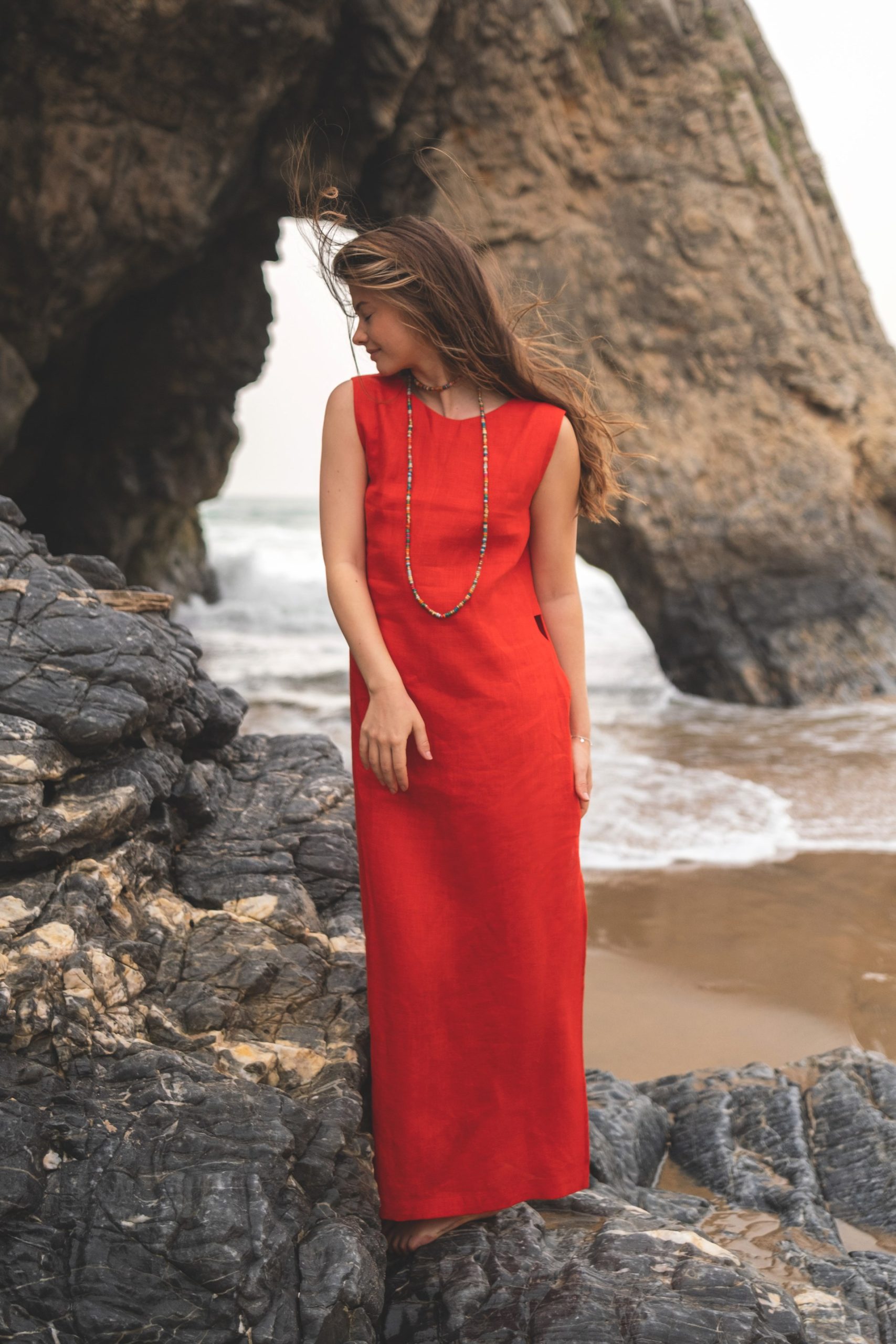 Оновлена сукня-бестселер в довжині максі та розрізом збоку. Рівний крій (щоб було зручно вдягати і не витягувалася при сидінні). Виріз попереду круглий, мисом на спині, на боках вставки з трикутників з вирізами.