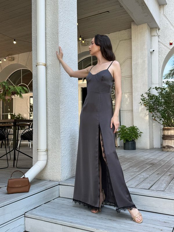 Баланс двох граней – витончена жіночність та елегантна Витончені лінії, позачасові силуети, глибокі класичні кольори – це все про неї, про шовкову сукню із французьким мереживом, що поєднала найкраще для ефектних вечірніх виходів.