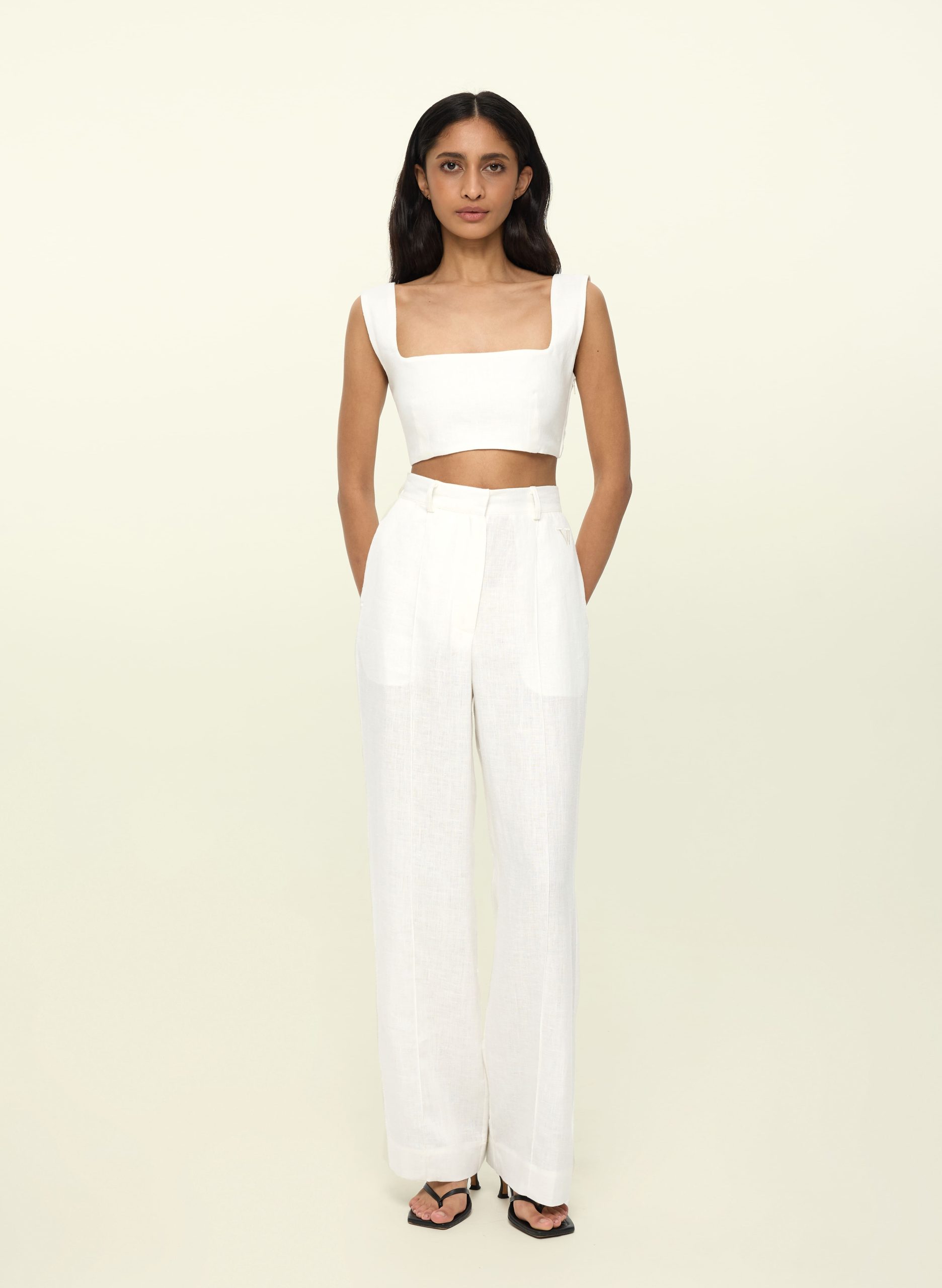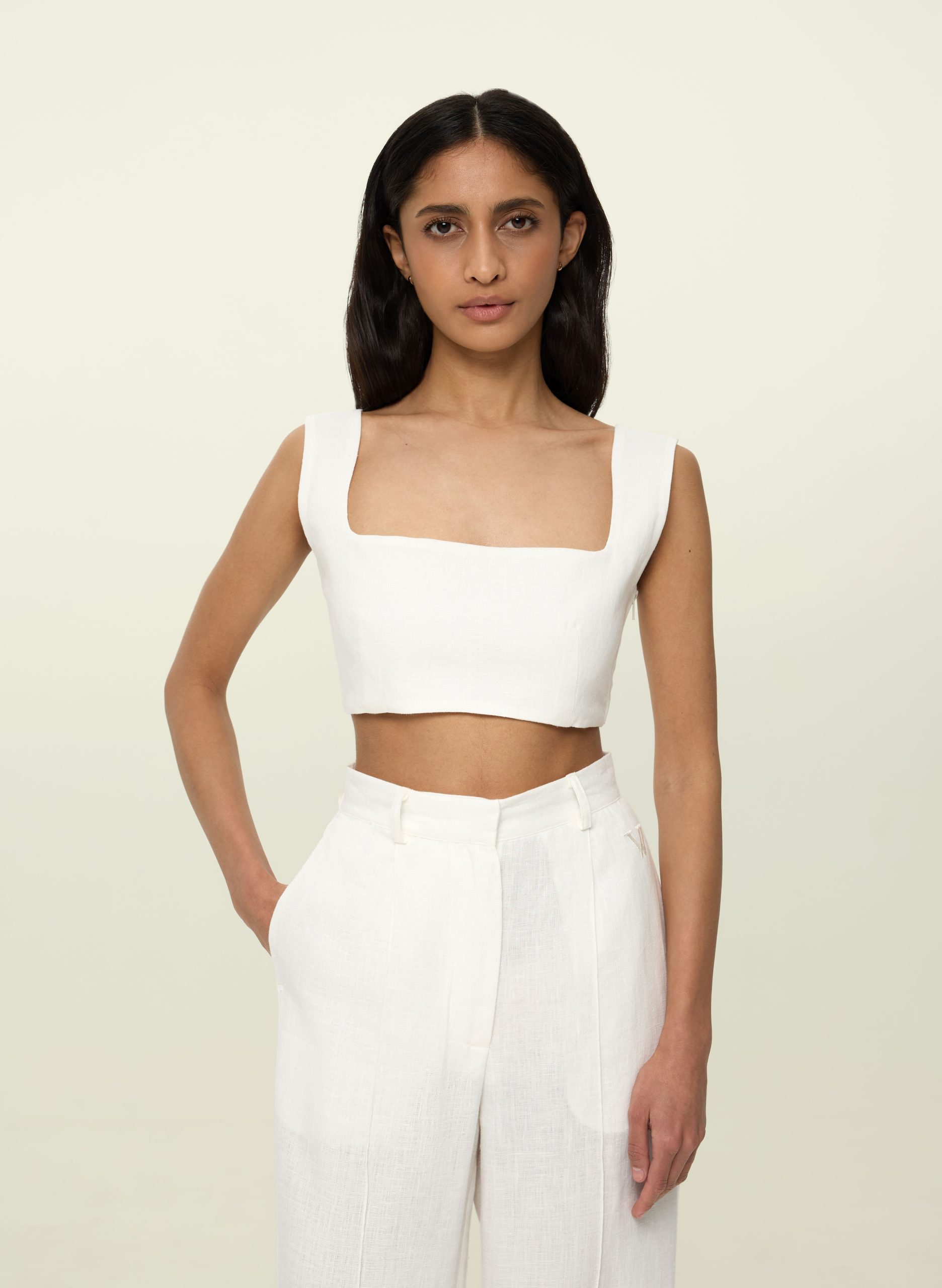Made from lightweight and breathable linen — the perfect material for hot days. Features wide straps and a hidden zipper on the side. The fabric isn’t see-through, so you can wear it with or without a bra — choose whatever feels most comfortable for you.