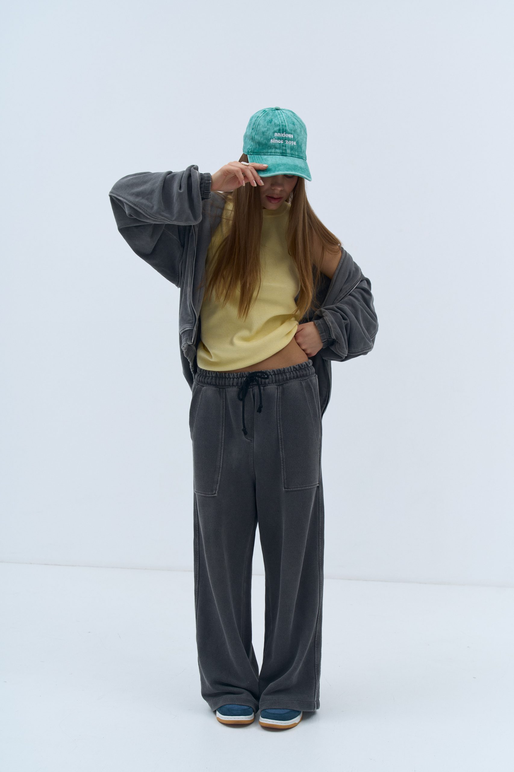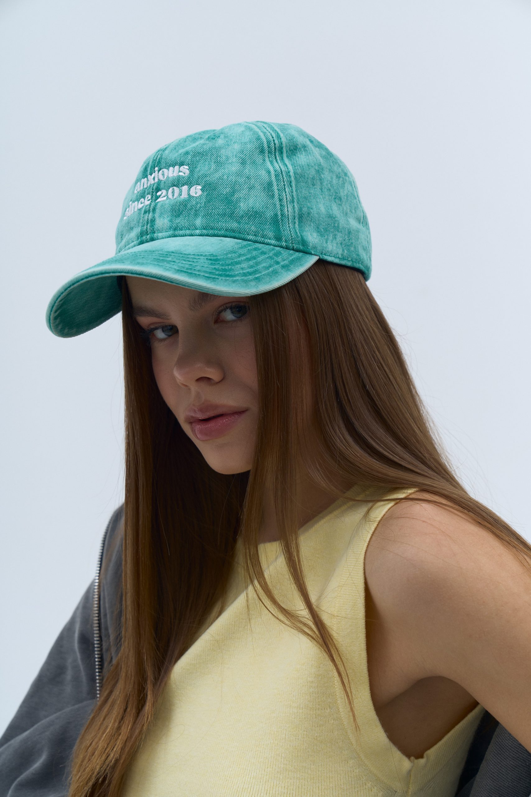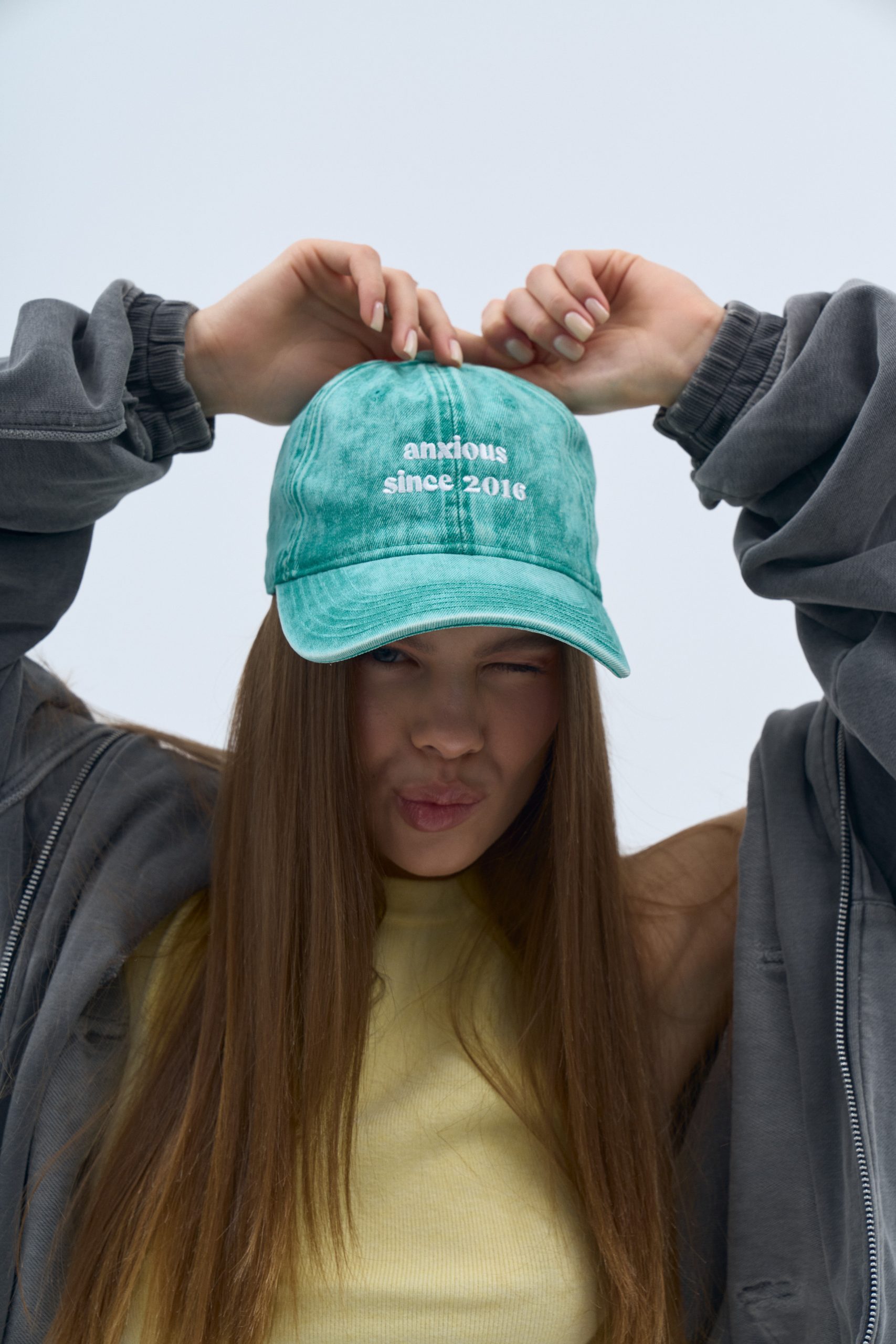 Яскраво-зелена кепка “anxious since 2016” говорить сама за себе. Вона символізує той час, коли тривожність стала постійним супутником багатьох із нас. Цей аксесуар нагадує про те, що говорити про свої почуття та визнавати свої переживання — це не слабкість, а сила.